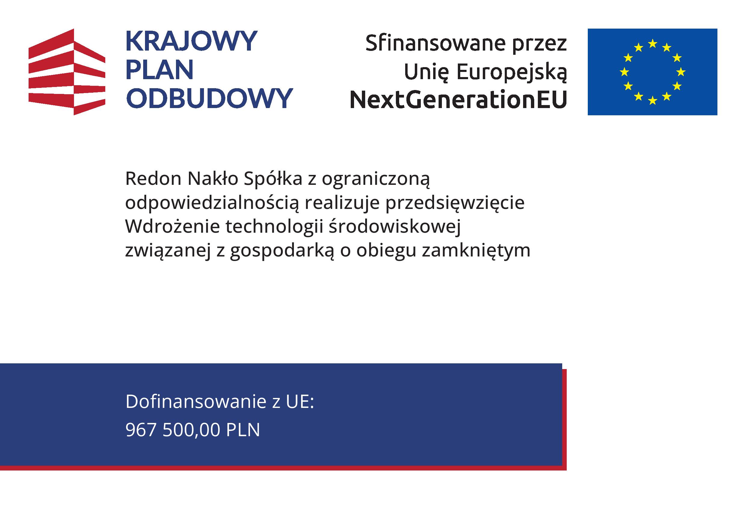 Redon Nakło Spółka z ograniczoną odpowiedzialnością realizuje projekt pt. „Wdrożenie technologii środowiskowej związanej z gospodarką o obiegu zamkniętym w Firmie Redon Nakło Sp. z o.o.